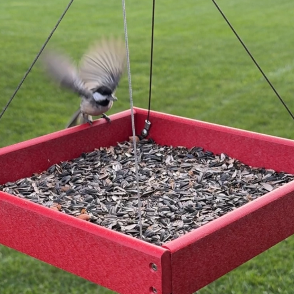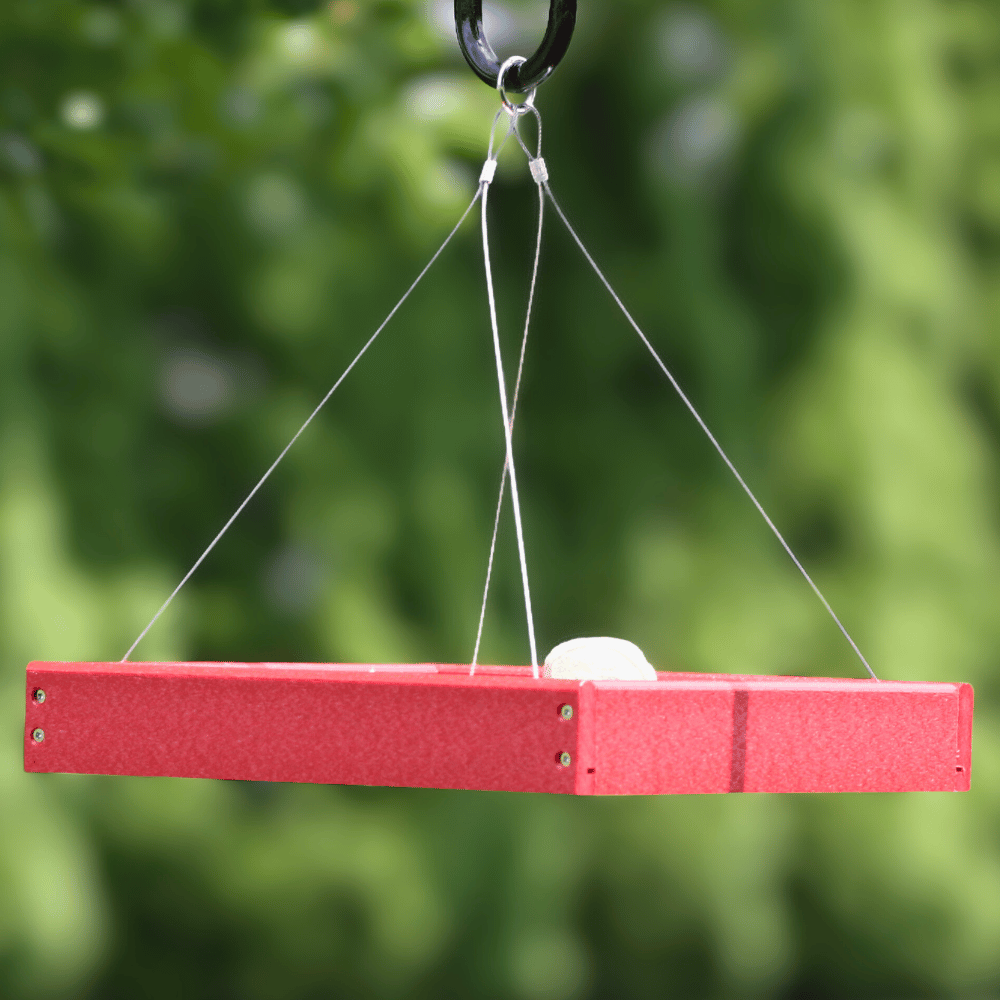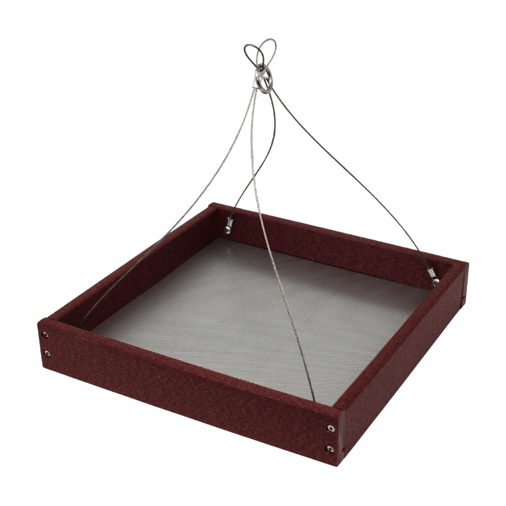 Unit price perThe EcoPerch™ Open Tray Feeder is the perfect way to invite a wide variety of birds to your backyard. This versatile platform feeder, often called a fly by feeder, has an open, flat design that even larger birds like cardinals and doves can enjoy comfortably. Crafted from durable eco-friendly poly lumber and finished with rust-resistant stainless steel hardware, it’s built to last through every season. The mesh screen bottom promotes drainage to keep seed fresh, while the raised edges help keep food in place. Its hanging design also helps keep pests at bay. Whether you're offering sunflower seeds, fruit, or suet, this easy-to-clean feeder makes refilling a breeze and birdwatching even better.