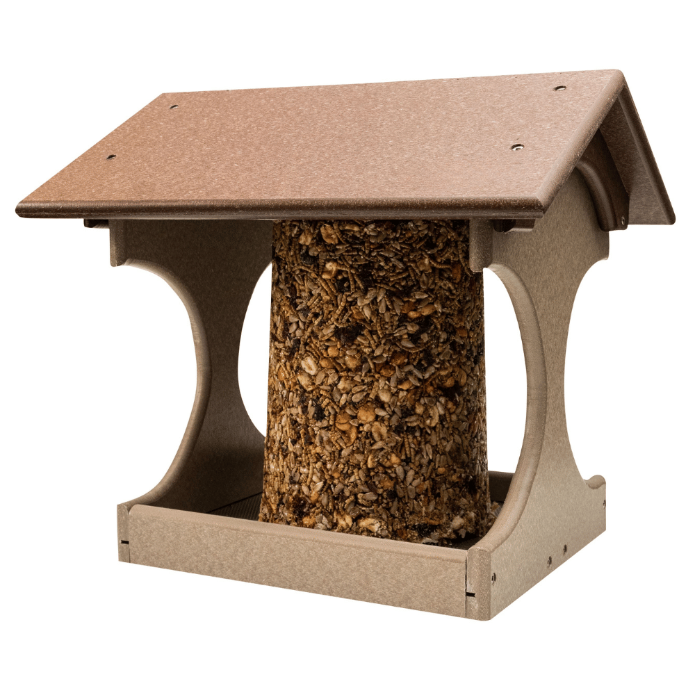Crafted from eco-friendly poly lumber and finished with stainless steel hardware, this feeder is built to withstand the elements season after season without cracking, fading, or warping. Whether filled with suet logs for winter nutrition or seed cylinders for year-round enjoyment, it’s a beautiful and functional addition to any bird lover’s outdoor space.