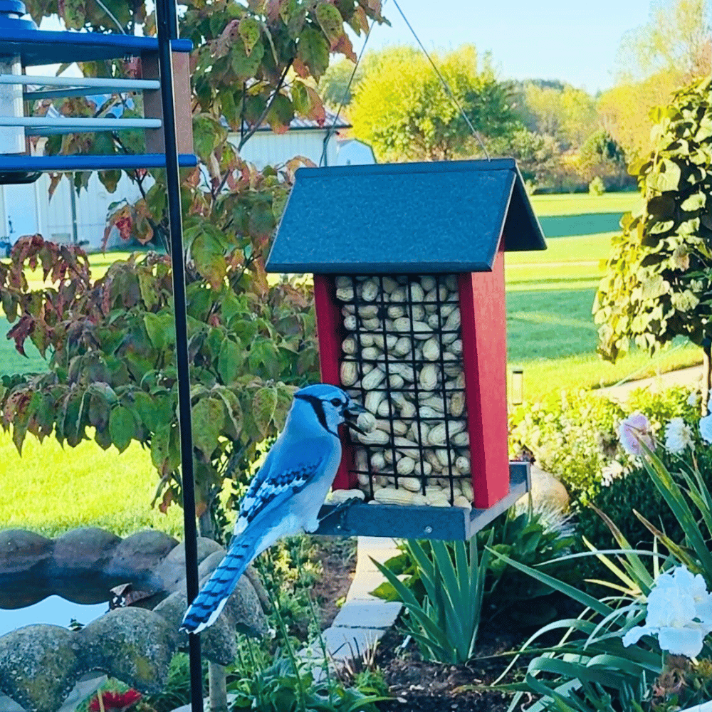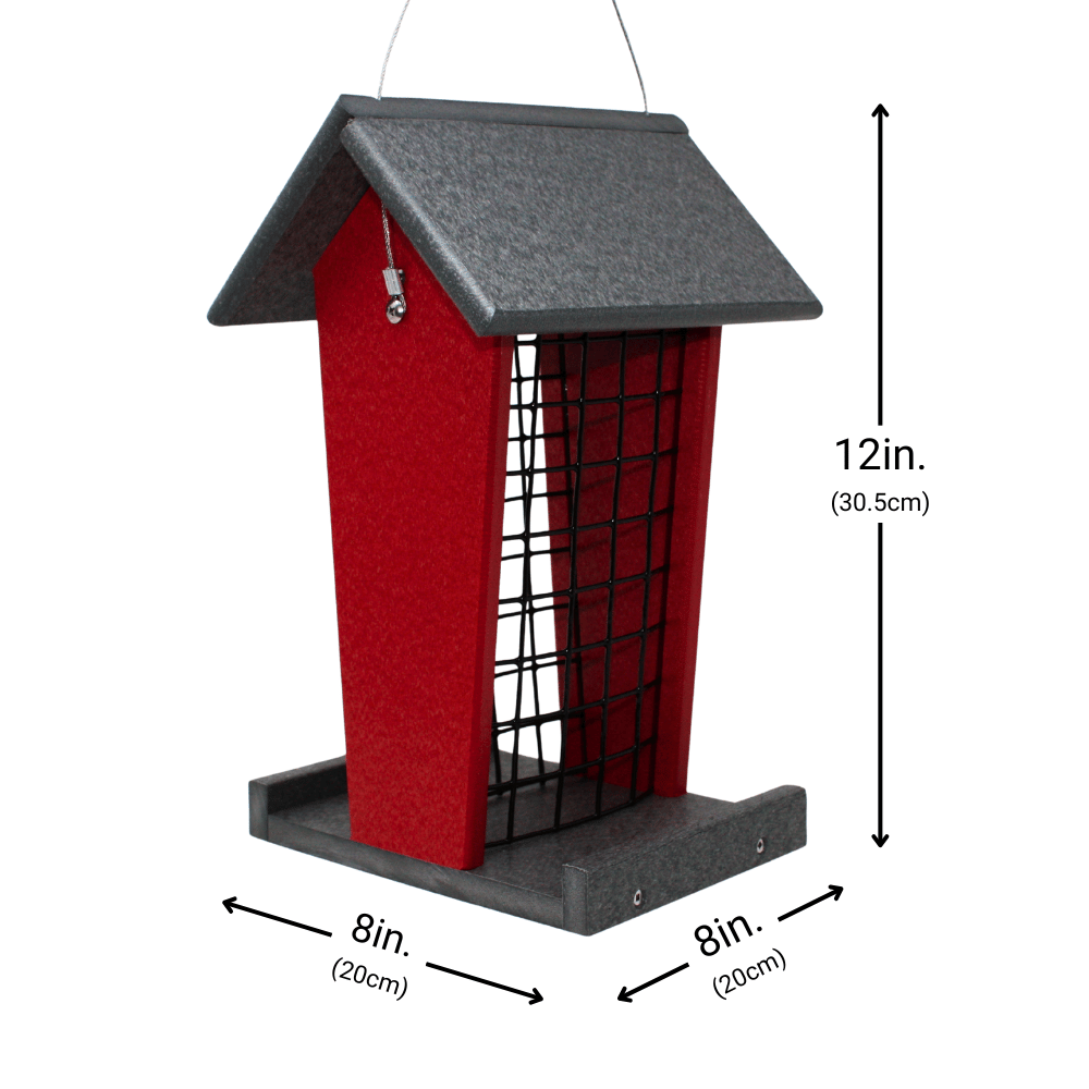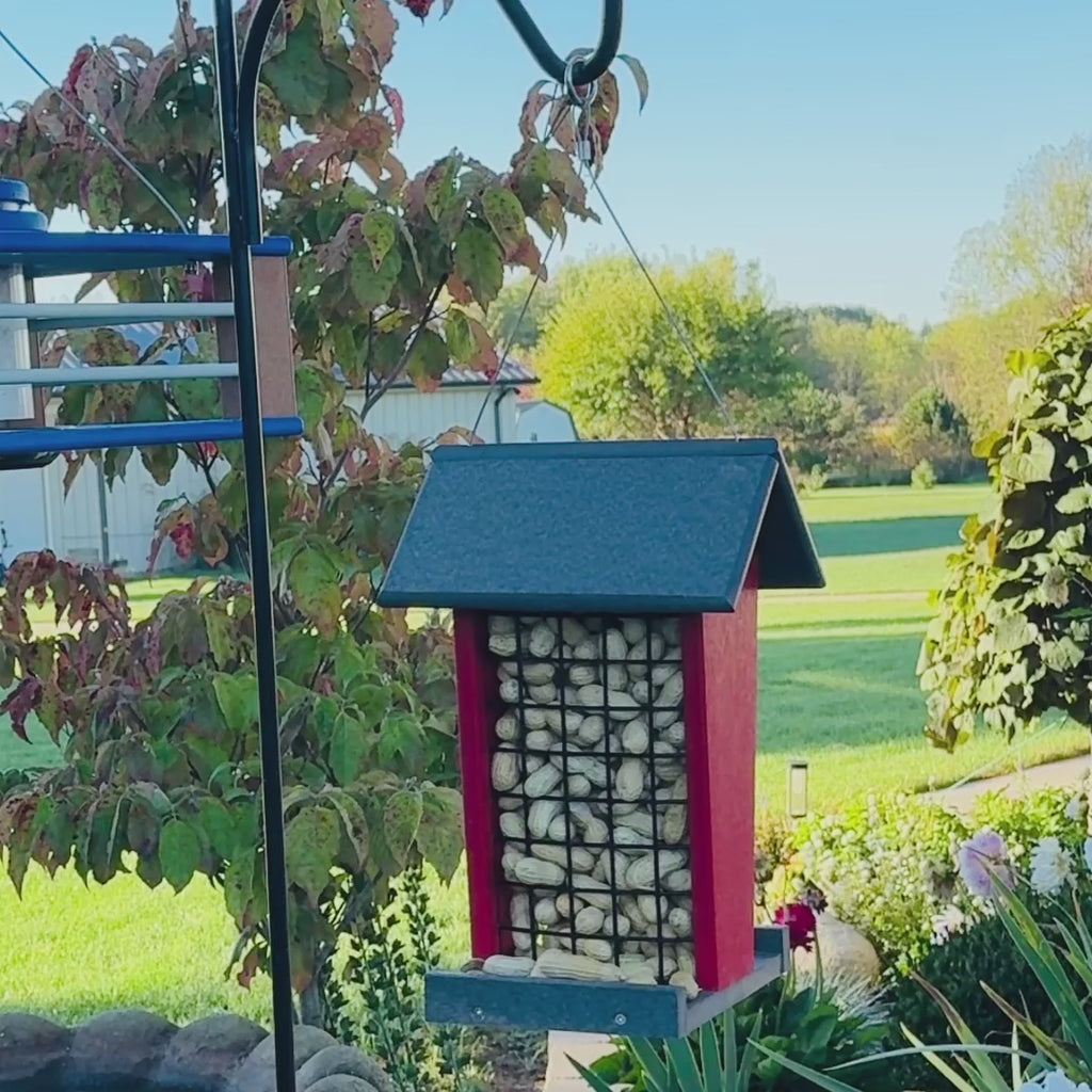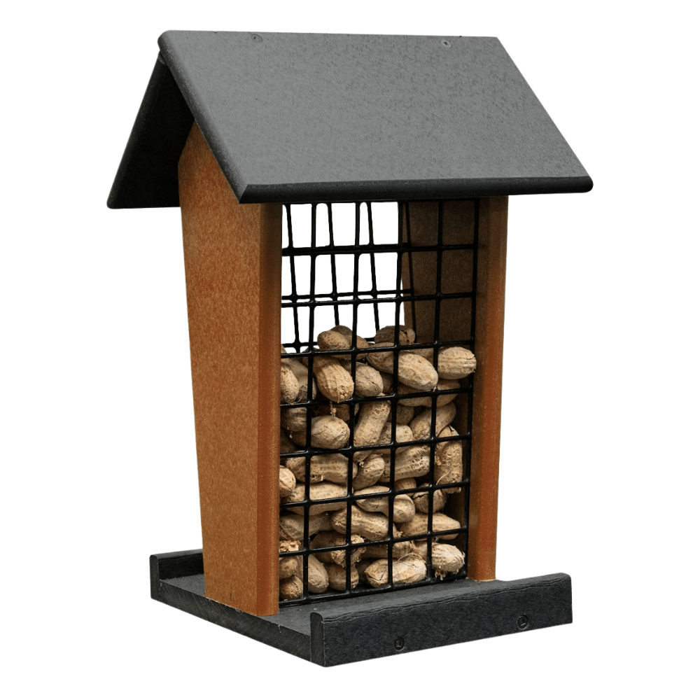 Bring jays, woodpeckers, and other peanut-loving birds to your backyard with the Whole Peanut Mesh Bird Feeder. Its sturdy metal mesh front lets birds easily cling and peck at whole peanuts, creating plenty of feeding activity to enjoy. Crafted from eco-friendly poly lumber, it won’t crack, fade, or warp—offering long-lasting durability with minimal upkeep. The open design makes it easy to see when it’s time to refill and adds a rustic touch to any backyard setup. Perfect for year-round use and a natural way to attract your favorite wild birds.