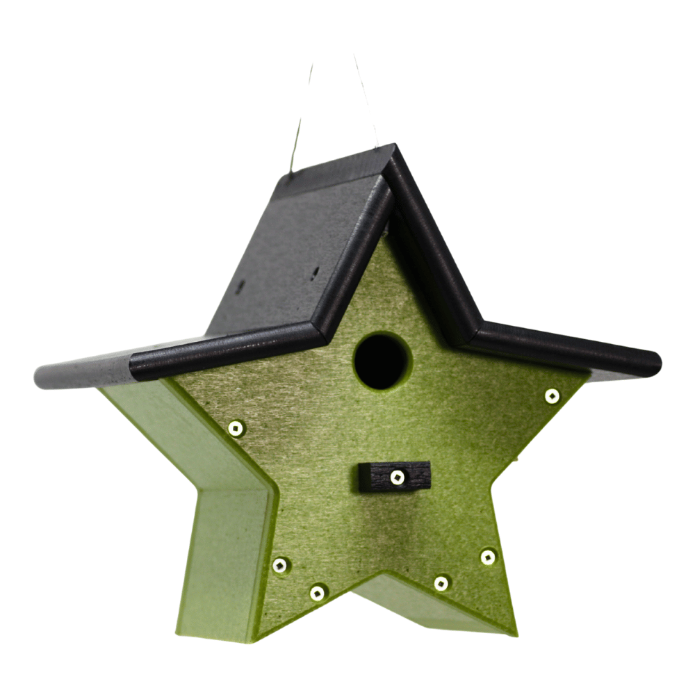 Bring a touch of charm to your backyard with the Star Shaped Wren or Chickadee House, beautifully crafted to stand out while offering a cozy nesting spot for small birds. Designed with a 1.125" entrance hole, it’s the perfect size for wrens, chickadees, and other petite songbirds.