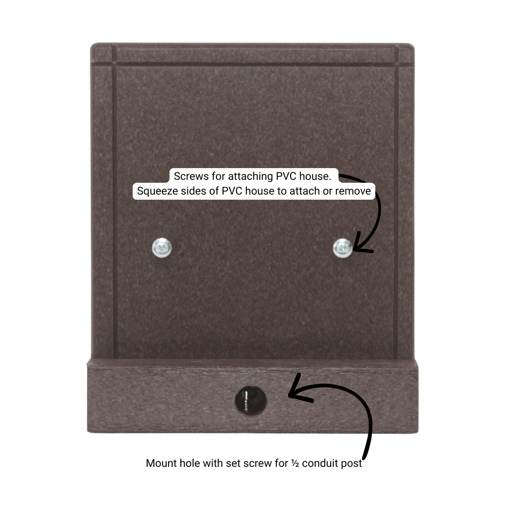 Unit price perThe Sparrow-Resistant Gilbertson Bluebird House gives your birds a safe place to nest. Based on the trusted Gilbertson design, it features a slotted entrance that lets in sunlight—something sparrows don’t like. This prevents male sparrows from trapping female bluebirds inside. The upgraded roof is made from recycled plastic lumber, and the house is crafted with durable PVC for long-lasting use. It mounts easily on 1/2" conduit and the house pops off quickly for cleaning. Whether you're just starting out or replacing an old house, the Sparrow-Resistant Gilbertson Bluebird House is an easy, low-maintenance way to protect your bluebirds and enjoy a more peaceful backyard.