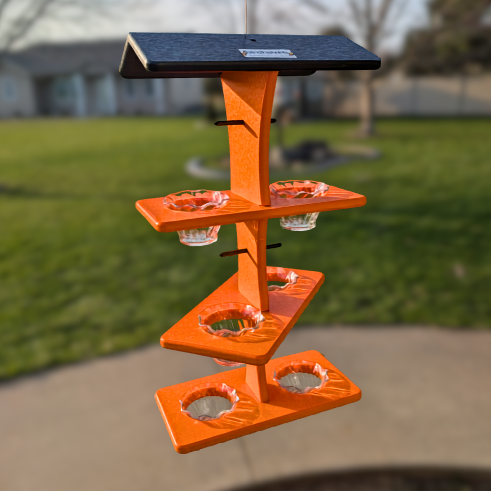Unit price perBring more orioles to your yard and keep them coming back with the Triple Deck Oriole Jelly & Orange Feeder. The three feeding levels let you offer more jelly and orange slices at the same time, so birds stay longer and you refill less often. Made from eco-friendly poly lumber with stainless steel hardware, this feeder is built to last through every season. The multiple cups and orange pegs give orioles exactly what they love in one place. It’s a simple way to turn your yard into a busy, colorful feeding station.
